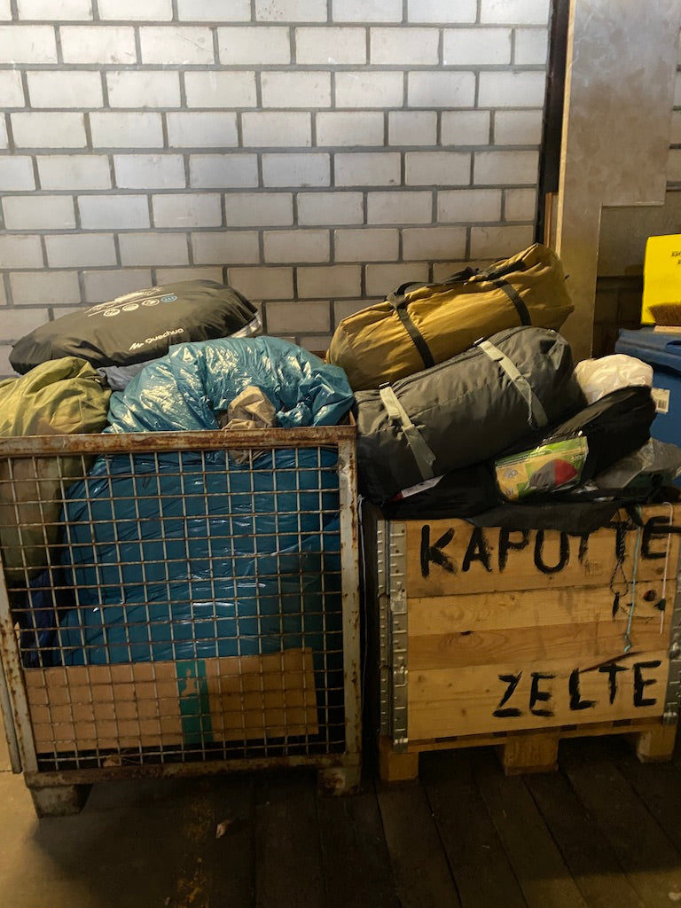 Besucher*innen ihr kaputtes Campingmaterial abgeben. An der tentation